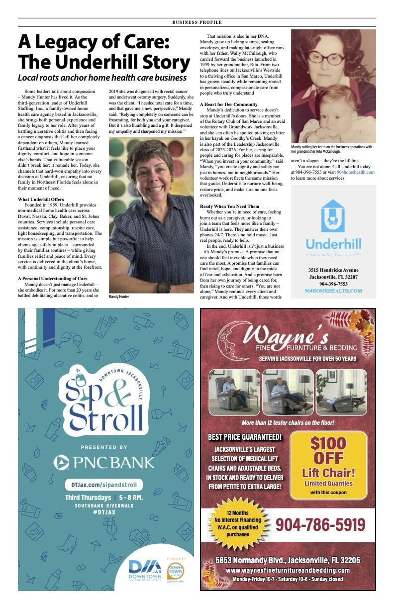 Featured in our October 2025 Business Profile, Mandy Hunter shares the story behind Underhill Staffing, Inc., a third-generation home health care agency rooted in compassion and community. Through personal experience and family legacy, Mandy continues a tradition of helping Northeast Florida families age with dignity and support.